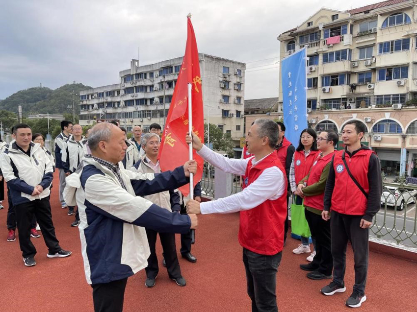 在臺州臨海,從有著一千多年歷史的臨海古城墻出發,浙江省水利廳的黨員干部用毅行和旗幟傳遞的方式重走了臺州靈江水利建設之路,實地傾聽了一場古今水利工程之間的“對話”,感受著水利建設從古至今的發展與變遷,也感受著水利人治水安瀾這一不變的初心和使命。此次聯建活動還舉行了一場別開生面的比賽,由省市縣水利黨員混合組成不同方隊,沿著古城墻,按照老中青的順序一起接力開跑,以此象征水利人光榮使命的傳承,用活力和汗水致敬水利建設者。