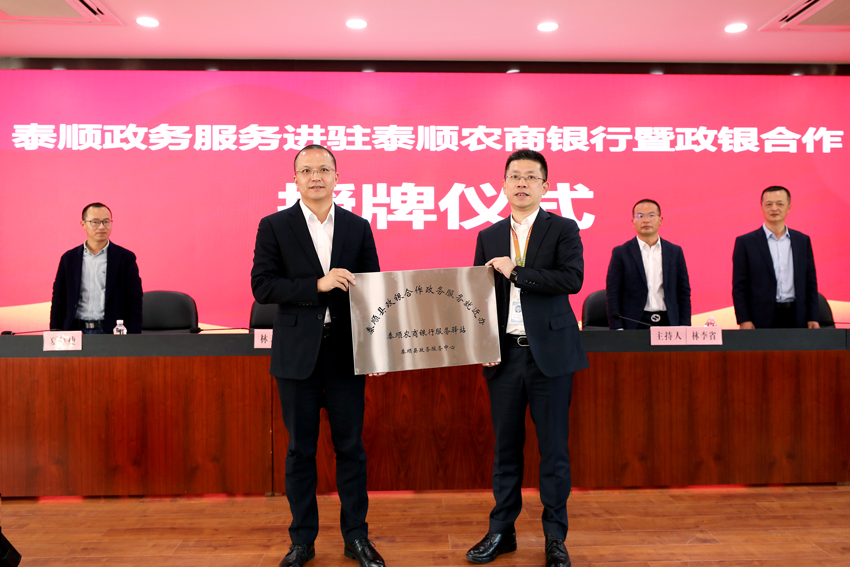 泰順政務服務進駐泰順農商銀行暨政銀合作授牌儀式。泰順縣委宣傳部供圖
