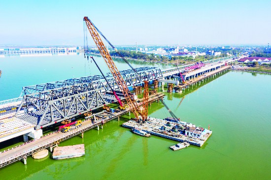 近日,在杭金衢高速公路二期改擴建工程衢江大橋施工現場,施工機械在進行鋼桁架吊裝拼接及橋面施工。截至10月底,項目累計完成投資111.91億元,占批復概算的79.3%,全線形象進度完成84.1%,主體工程有望年底完成,計劃明年10月全面建成通車。(胡肖飛)