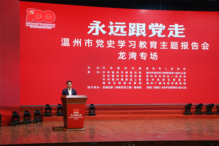 “永遠跟黨走”溫州市黨史學習教育主題報告會龍灣專場舉行