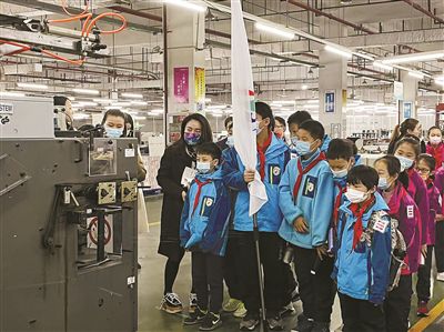 走進精品圖書車間,濃郁的紙香撲面而來,加工設備隆隆運轉,一線工人往來穿梭……現場,同學們在老師的帶領下實地參觀、了解文具生產的過程。隨后,大家前往品牌展廳,琳瑯滿目的創意文具讓大家目不暇接,潮流化的文具設計理念也向同學們傳達著新時代下創新與融合發展的重要意義!敖裉臁两健捏w驗,不僅讓我學習了文具、印刷、紙張等相關專業知識,對安全購買、使用文具的認識也有所提高!睂幉ㄊ兄性W601班的李金璇說道。