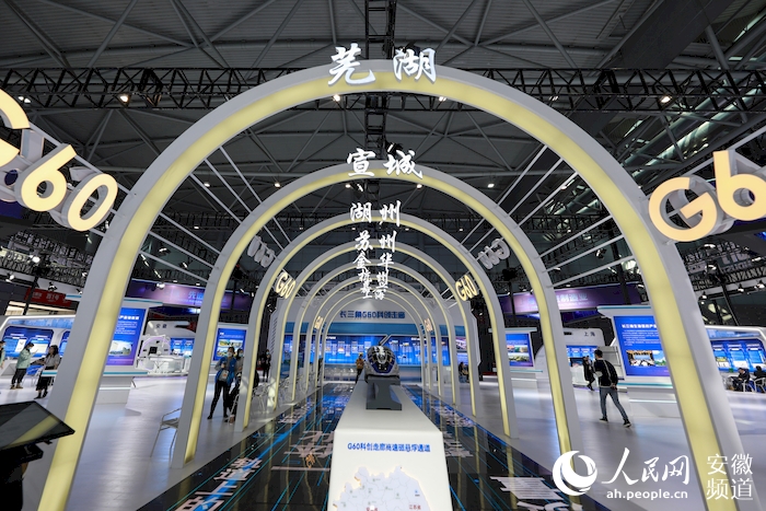 長三角一體化展區的G60科創走廊高速磁懸浮通道。人民網 張俊攝