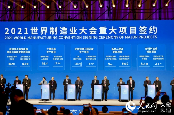 人民網安徽頻道了解到,截至目前,2021年世界制造業大會促成合作項目703個,投資總額5821.8億元,其中在大會期間集中簽約項目399個、投資總額3743.2億元。