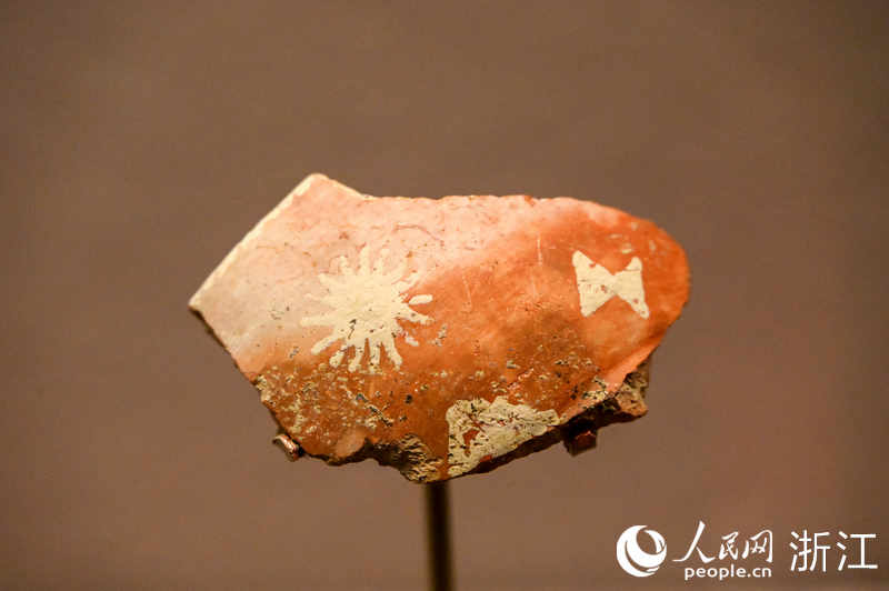繪有太陽紋的彩陶片。人民網 葉賓得攝