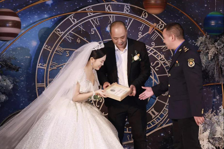 為新人贈送“清風牌”!這場特殊的婚禮受好評