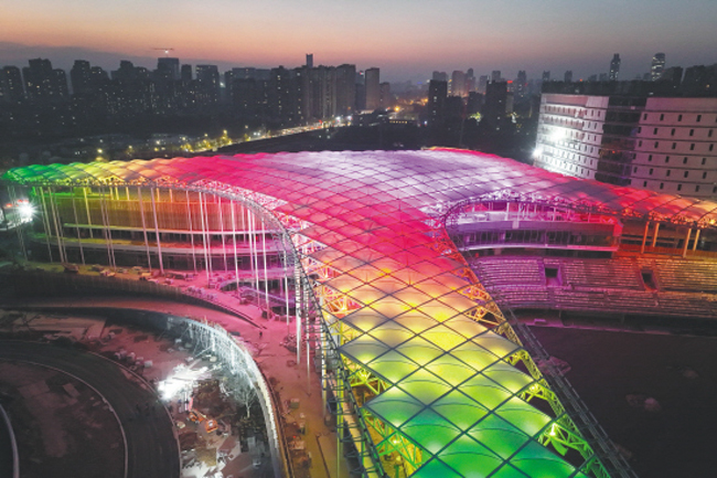 12月3日,紹興市正在建設中的杭州亞運會棒(壘)球體育文化中心首次亮燈。璀璨的燈光猶如一條炫麗的絲帶,將各個場館串聯起來,盡顯靈動之美。燈光主色調選擇了映日紅、月桂黃、湖山綠、虹韻紫、水光藍、水墨白六種杭州亞運主題色,與“中國特色、浙江風采、杭州韻味、紹興古香、精彩紛呈”亞運主題相呼應。(章斌、林佳萍)