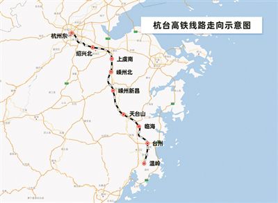 全長266.9公里的杭臺高鐵,設紹興北、上虞南、嵊州北、嵊州新昌、天臺山、臨海、臺州、溫嶺8個車站,其中上虞南、嵊州北、嵊州新昌、天臺山、臺州五個站點為新建站。