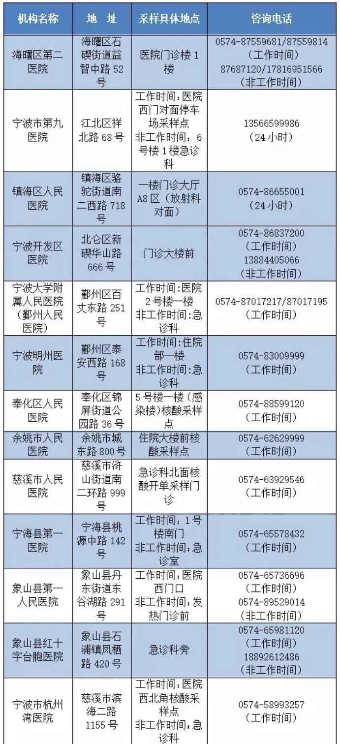 為從嚴從緊抓好疫情防控工作,切實保障人民群眾身體健康和生命安全,寧波市衛健委發布了24小時核酸采樣檢測點名單↓↓↓