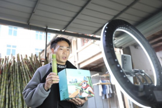 甘蔗產業的壯大,也吸引了許多年輕人返鄉!85后”沈建君是陶山鎮岱下村人,放棄了海外襪業生意回鄉從事農業生產,加入合作社注冊了甘蔗商標,通過快手、抖音直播銷售!吧鲜卸潭淌畞硖,每天在自己的直播平臺可賣三四百箱甘蔗,銷量好的話,達到4000多箱!