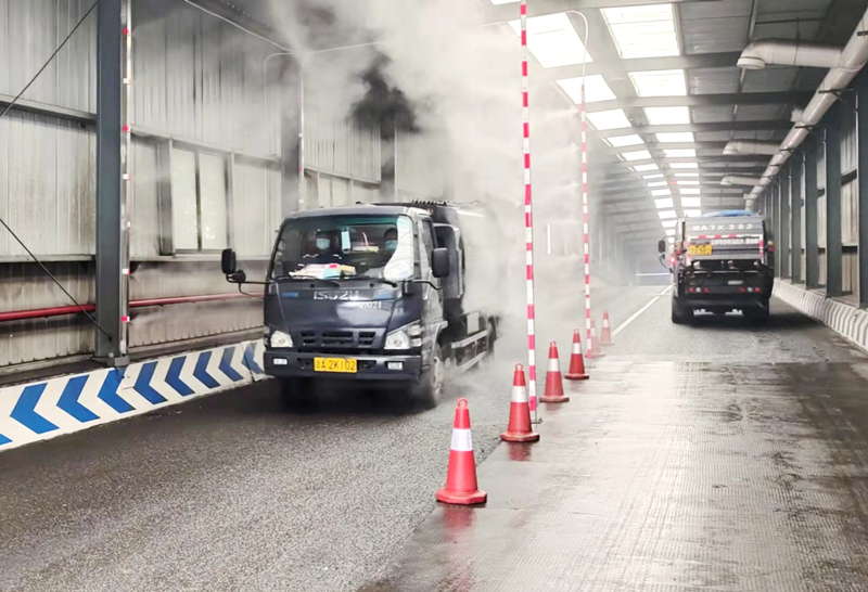 處置企業正在對進出場車輛進行噴淋消殺。蕭山錦江綠能供圖