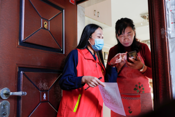 上午10時許,溫州景山社區網格員董夕夕正拿著“溫州防疫碼”逐戶進行檢查,詢問他們近期是否去過杭州、寧波、紹興等重點地區。景山社區書記陳潔告訴記者,景山社區內有近10個小區,以及景山公園內各個單位、宗教場所。為了做到情況明、底數清,社區將每個小區網格員分派3組,每組2人上樓查驗。為了加快進度,景山社區也于早上通過微信網格群向各戶居民發布通知,讓群內住戶先通過截屏的方式將行程碼發在群內并做好統計工作。