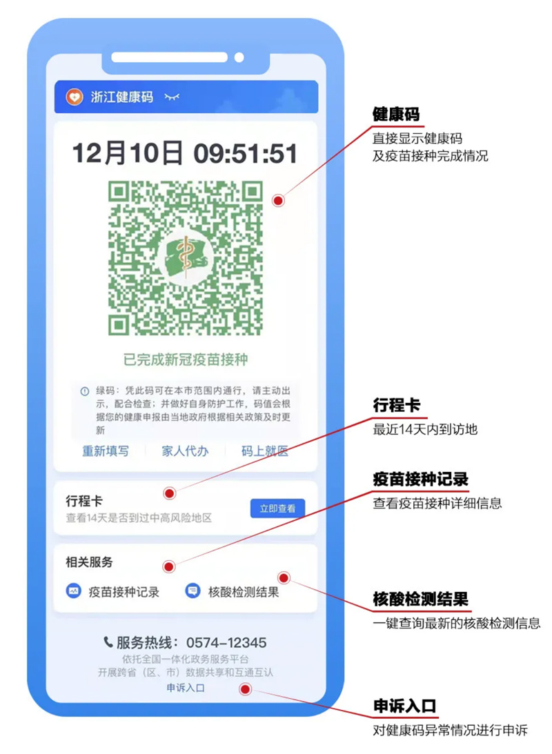 寧波發生本土疫情以來,市民外出時除了需要查驗健康碼外,還要查驗行程卡甚至提供最新的核酸檢測報告及疫苗接種記錄,如要完成上述操作,需要涉及多個平臺。為方便市民操作,浙里辦寧波頻道對“健康碼”服務進行全新升級,不僅可以查詢實時健康碼,還會顯示是否已完成新冠疫苗接種以及疫苗接種的詳細次數和時間。此外,在頁面中還能一鍵查詢最新的核酸檢測結果及行程卡。