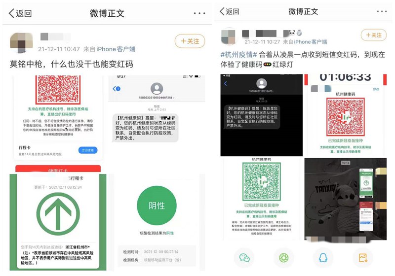 “早上7點多剛醒,打開手機就看到健康碼異常的短信提醒,我趕緊打開支付寶查看自己的健康碼狀態,果然變紅碼了!焙贾菔泄笆麉^天水街道倉橋社區居民方女士說,“我在微博上輸入‘紅碼’進行了實時搜索,發現有不少在杭州的網友和我是一樣的情況!