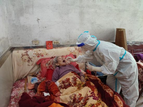 “阿婆,請您張張嘴,我們為您做個核酸檢測,會輕輕的,您不要擔心!12月15日下午,文成峃口鎮江岸村的疫情防控演練結束后,鎮黨員志愿者陳勇得知村里部分老人行動不便,沒能到現場進行核酸檢測,便聯合村里網格員,一同帶著衛生院核酸檢測工作人員逐一深入老人家中,一邊宣傳防疫知識,一邊為其進行核酸檢測。