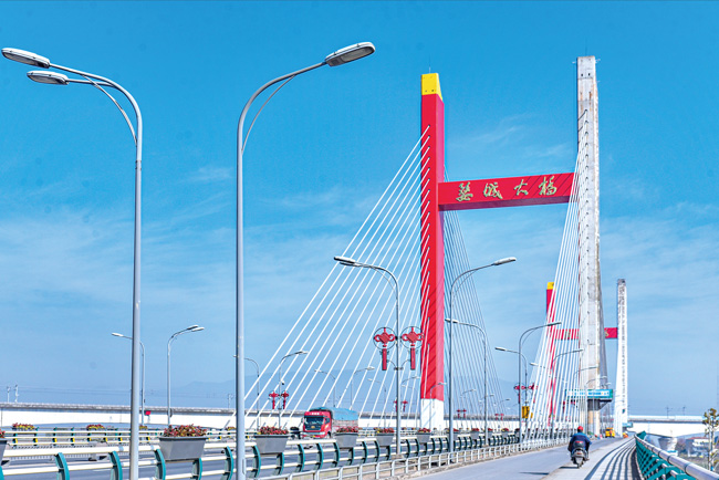 近日,市民發現,位于金華市婺城區連接乾西鄉與白龍橋鎮的婺城大橋外觀有了變化:主橋結構雙塔已一半刷成深紅色,塔尖用黃色點綴。婺城大橋2008年建成通車,使金華江以北路段與婺城新區實現貫通,打通了二環路交通“瓶頸”,緩解了市區西北片主干道的擁堵狀況,有效推動了婺城新區的發展。(吳潮宏)