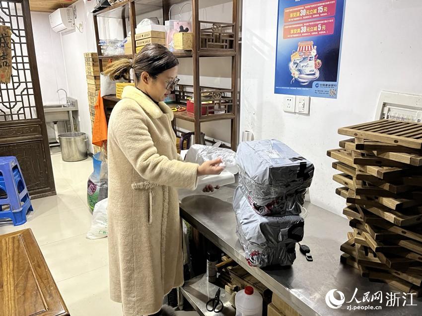 陳靈正在打包快遞。人民網 陳萬泉攝