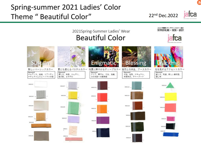 “各國都意識到疫情過后的世界會與以前有較大不同,但有些東西還是需要堅持,所以色彩主題在‘不同、公平、普遍’中展開。雖然本季流行色色卡中間色和深色較少,但為了能較好地組合色彩,不妨從2021春夏的基礎色彩中或者其他國家提案色彩中提取,因為基礎色彩仍然重要!睏顤|奇說。