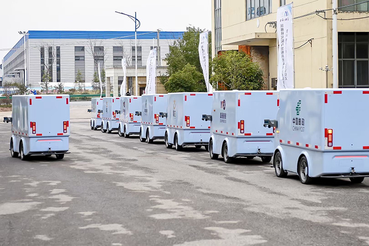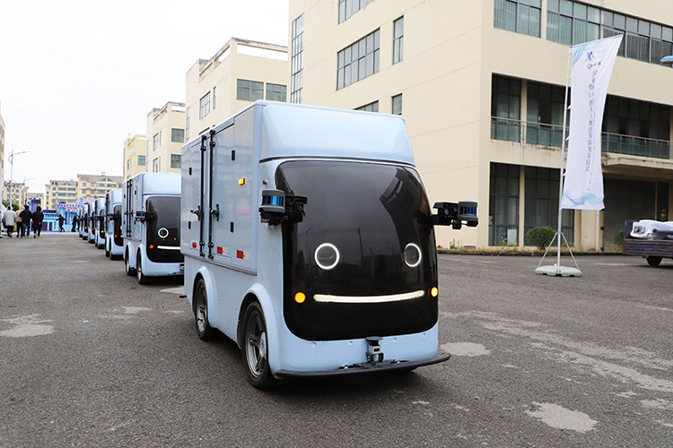 自動躲避障礙、自動泊車換道、自動識別紅綠燈……12月25日,10臺長相呆萌的淺藍色L4級無人配送車在南陵縣正式“上崗”,從國郵快遞物流智能裝備(南陵)產業技術研究院發車,自動駛向訂單配送目的地。