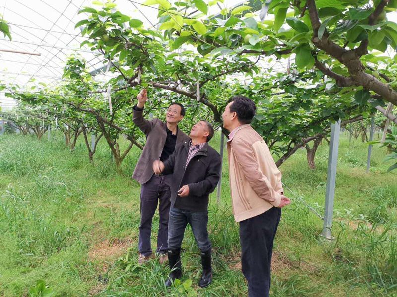 在產業技術隊伍建設和果樹專業人才培養上,他注重發揮“傳幫帶”作用,開展技術培訓和指導,助推知識更新,近年來每年組織參加果樹專題講座、技術培訓10多期,共計培訓技術人員與果農近萬人次。結對主體開展科技幫扶,用自己的科技知識服務生產一線,指導應用先進技術,培育精品生產意識,聯系指導臺州臨海涌泉柑桔專業合作社實施柑桔設施延后、交替結果、完熟栽培等優新技術,生產的臨海蜜桔獲得浙江省柑桔擂臺賽冠軍,品質名揚省內外;聯系指導杭州富陽大青果園引進梨優新品種,開展設施棚架栽培、肥水同灌、藥肥雙減等先進技術,生產的“新玉”梨獲中國北京世界園藝博覽會國際競賽唯一早熟梨金獎。