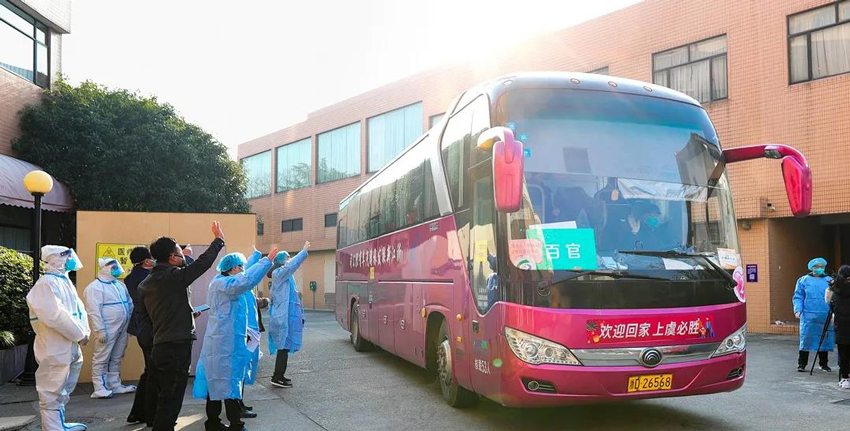 在紹興某大酒店,233名上虞隔離人員也帶著喜悅走出了隔離酒店!澳,離開前請記得帶好行李,帶好自己的解除隔離證明!痹诟綦x酒店工作人員的囑托下,隔離人員登上了大巴。12歲的初一學生宋靜玲獨自隔離在酒店,她告訴記者,第一次離開父母這么久,也害怕,但是酒店內的工作人員都對她特別照顧,還送她零食大禮包,讓她慢慢放松下來。隔離的14天內,也讓這個12歲的女孩更堅強、更獨立。