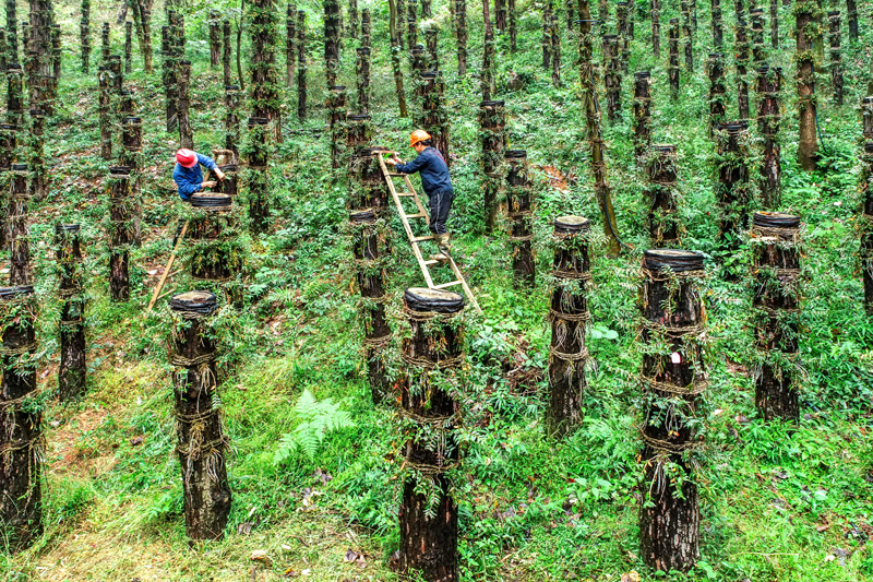 長樂林場內,工作人員正在采摘野生鐵皮石斛。吳海平攝