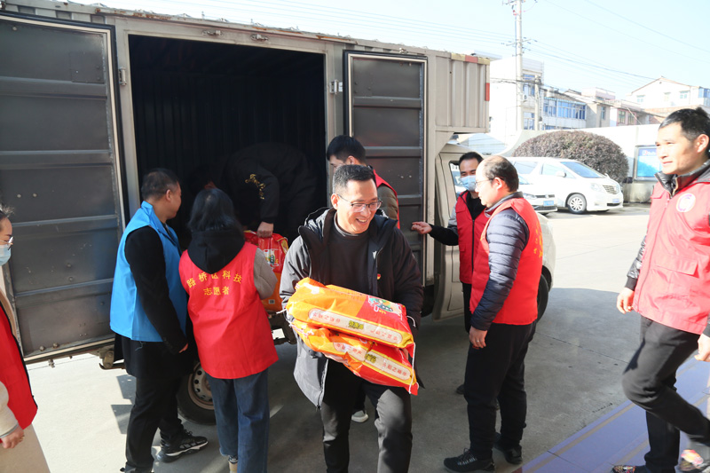 一袋袋大米,一桶桶食用油,把臺州一家閥門公司的門廳擺得滿滿的!敖衲晡覀冺憫栒,決定一家人在臺州過大年。馬上過年了,剛想著去超市買點年貨,峰江街道的同志就給我們送來了,我們這些外來務工人員感到很溫暖!痹摴景不占畣T工鄭傳銳說。