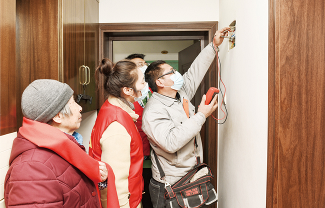 1月21日,金華開發區三江街道雅苑社區的“暖心水電幫幫團”為轄區孤寡老人、高齡老人檢查家里是否存在電線老化等安全隱患。據了解,雅苑社區是一個老舊小區,轄區內有獨居老人58戶。臨近春節,為了給轄區老人營造一個安全的居家環境,雅苑社區開展黨建聯盟為孤寡老人送新春暖心禮包活動。(李建林)