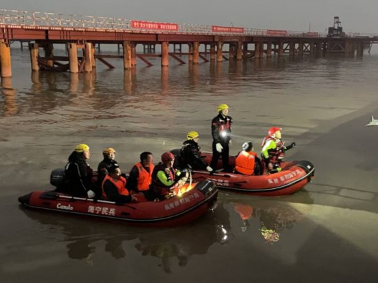 接到報警后,海寧市消防救援大隊立即調派硤石、海洲消防救援站和3個專職消防隊,同時組織海豹救援隊等民間救援力量前往處置。嘉興市應急管理局第一時間調度具有水上救援經驗的海寧海豹救援隊緊急出動,并迅速報告浙江省應急管理廳,請求調派駐守在嘉興桐鄉市崇福嘉興航空應急救援常態化備謹點的直升機參與救援工作。