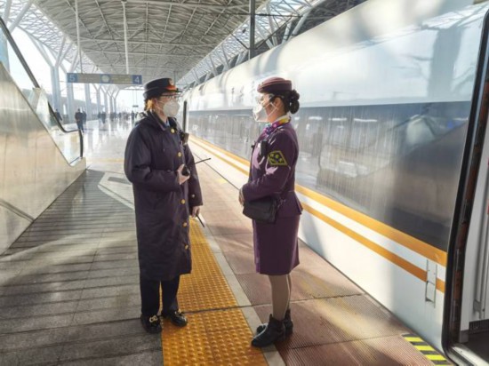 同時,她聯系鐵路公安,維護現場的秩序,聯系地方駐站防疫人員上站臺交接出站,安排專業人員對流線通道進行全面消殺。這樣的鏡頭經常會出現,但堅守春運一線、落實防疫措施,為旅客提供安全溫馨的環境仔細規范是前提,緊張工作之后陳亭伊露出了微笑。