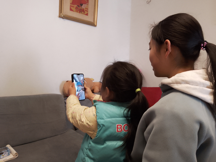 撥通媽媽的電話后,孩子們擠到屏幕前露出自己最燦爛的笑臉,藏在背后攥緊的小手微微出汗,透露出她們有些緊張的小秘密。