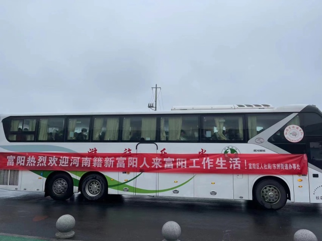 2月12日11時,305名河南籍“新富陽人”乘坐杭州市富陽區政府組織的“就業直達專車”,跨越千里抵達該區東洲產業園內的重點用工企業——浙江大華智聯股份有限公司。