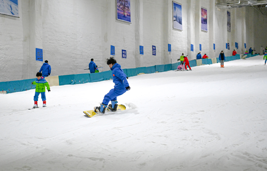 “別緊張,深呼吸,雙腿屈膝,重心壓低……”在文成天鵝堡室內滑雪場,在教練的指導下,Akmal進行單板滑雪體驗!拔覐男【头浅O矚g滑雪和滑冰,刺激的運動總是容易讓人開心!盇kmal說,“2月14日的北京冬奧會也正在進行自由滑雪和單板滑雪的賽事,對我個人而言,單板滑雪是第一次體驗,感覺比雙板滑雪更刺激更酷,真的非常棒!