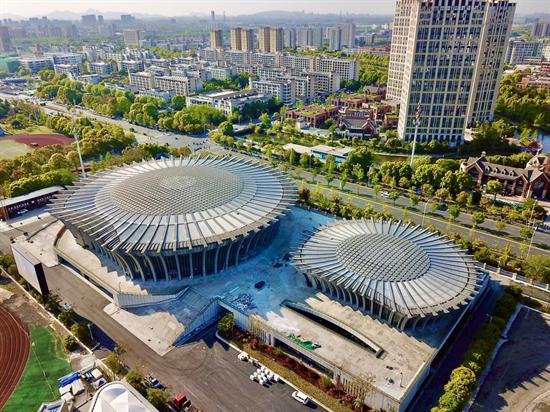 亞運手球比賽館位于浙江工商大學下沙校區內,在外型設計上采用“太陽花”的形狀,體現了積極的向陽生活態度。
