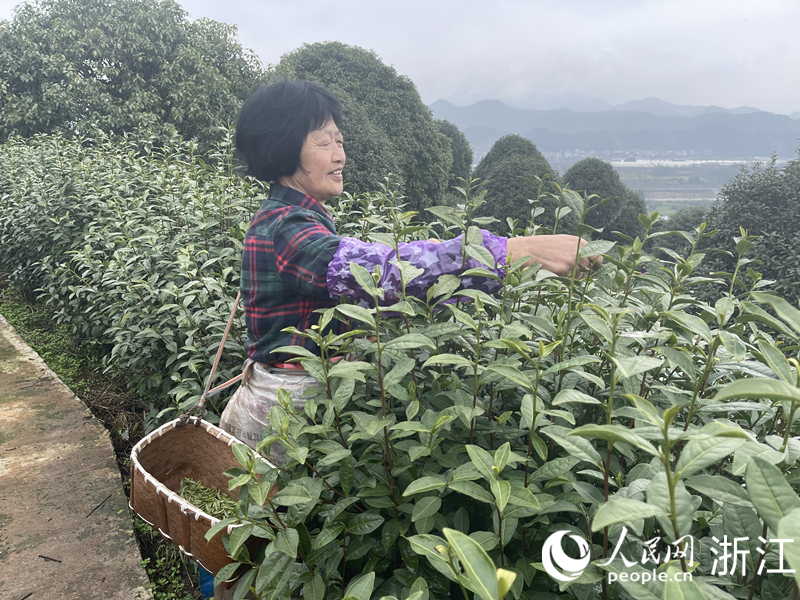 采茶工采摘開化龍頂頭茶。人民網 王蕭蕭攝