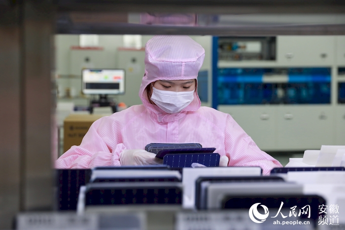 在安徽一新能源生產車間,工作人員檢測產品質量。人民網 張俊攝
