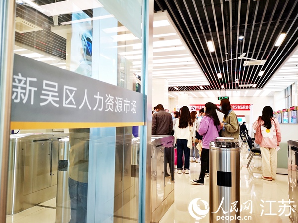 在無錫市新吳區人力資源市場,不少年輕人前來咨詢就業落戶事宜。儲霞攝