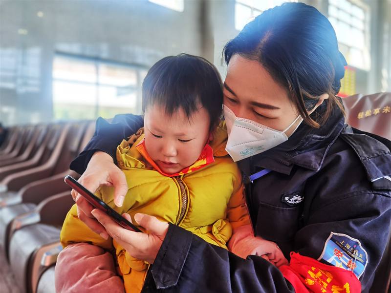 縉云西站工作人員正在安撫小孩情緒。莊衛東攝
