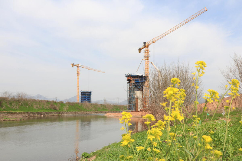 3月10日,浙江省金華市浦江縣浦陽江上,混凝土緩緩注入浦陽江特大橋125m主跨172號水中主墩墩帽,標志著杭溫鐵路二期項目建設者成功化解汛期危機,高速復工復產的同時打響快速前進的集結號。