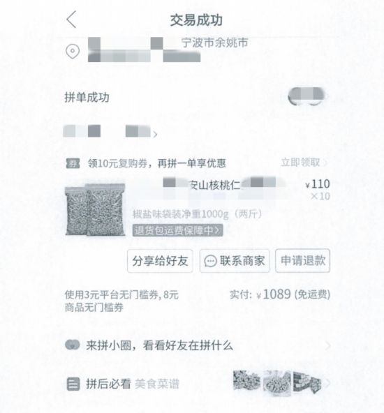 網購600袋山核桃仁后,寧波余姚男子起訴賣家賠14萬元……