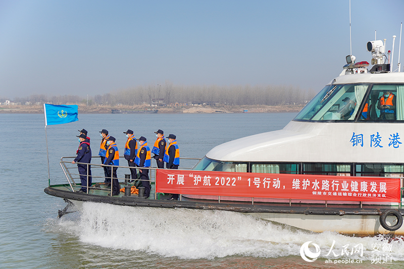 銅陵市交通運輸綜合行政執法支隊副支隊長丁琪斌介紹,自3月1號“護航2022”1號行動開展以來,銅陵市交通執法支隊共出動執法艇6艘次,執法車輛14臺次,執法人員115人次,檢查水路運輸企業84家次,與銅陵海事處、漁政等單位開展聯合執法3次,現場制止違法行為3起,排查消除隱患8處,向相關單位發送違法行為抄告函1份!拔覀冦~陵市交通運輸綜合行政執法支隊同長江海事、漁政等部門開展1號聯合執法行動,主要圍繞轄區船舶、船員、水運企業、港口碼頭、通航環境,依法打擊各類水路交通違法、違規行為,切實保護好我們的母親河,讓我們的長江黃金水道水域更清潔、航行更安全、運輸更暢通,更好地助力長江經濟帶區域水運經濟高質量發展!