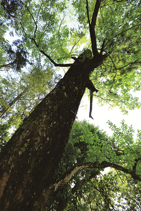 “屋前古樹春來早,枝繁葉茂風中搖!痹谂R安西天目山上,全球僅存5棵的天目鐵木在這里遺世獨立。天目鐵木因極其珍稀,被譽為“地球獨生子”。臨安最大的一棵天目鐵木生長在公路邊,目前已有300多年樹齡;另外4株,則相互“依偎”在一片茶園之中。