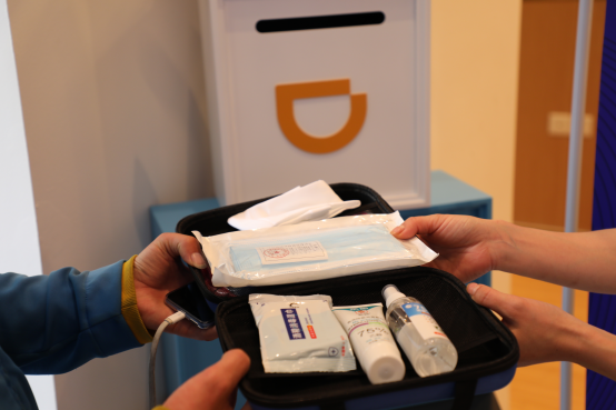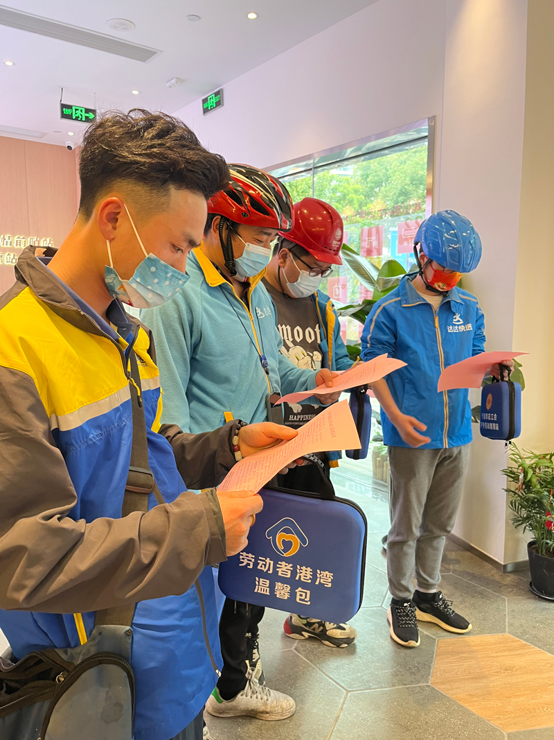 “甬愛E家”新就業群體服務站點向快遞小哥發放防疫消毒物資。江北區委組織部供圖
