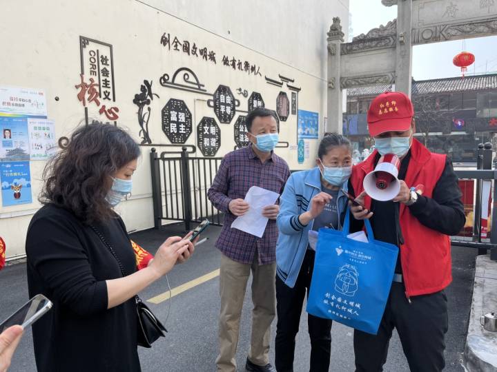 “請大家佩戴好口罩,不扎堆、少聚集!3月17日上午,在衢州市柯城區府山街道天皇巷社區府邸景苑小區,小區黨員“抗疫”先鋒隊隊長陸勝健身穿“紅馬甲”、手持小喇叭,在小區內開展巡查!岸嘁环至α考尤,‘抗疫’離成功就又近了一步!弊鳛橐幻艘圮娙酥驹刚,陸勝健組建起一支23人小區黨員“抗疫”先鋒隊,主動參與核酸檢測動員、現場秩序維護等工作。