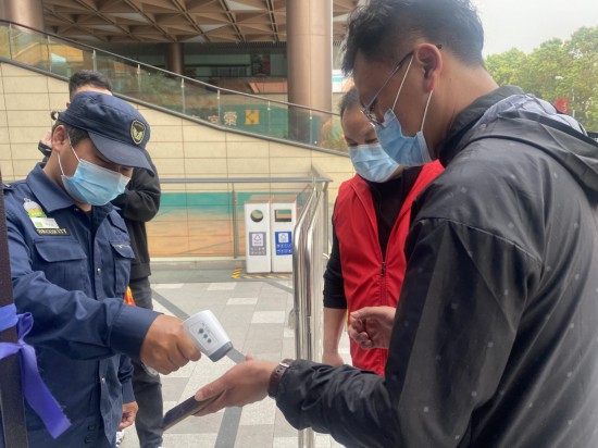 在印象里購物中心人行入口和車庫入口處,記者看到,穿著紅馬甲的志愿者與商場保安一起,督促進入人員必須佩戴好口罩,掃“場所碼”、測溫。保安王師傅說:“上周開始我們就已經要求掃‘場所碼’了,F在疫情形勢這么復雜,咱們都不能大意!
