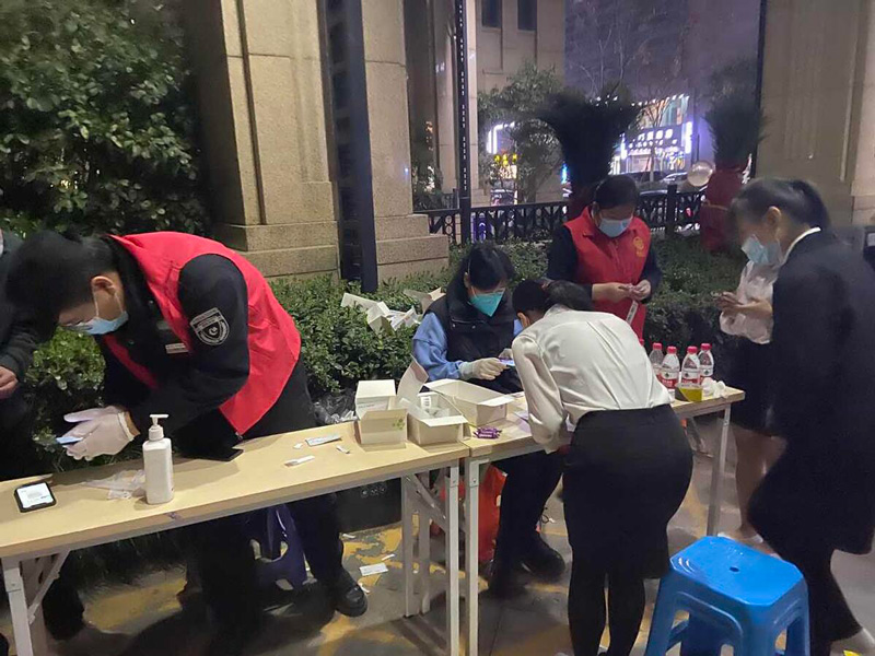 為了盡快完成居民“應檢盡檢”的檢測任務,該支行的志愿者們依然保持著高漲的熱情,有條不紊、熱心耐心的引導,爭分奪秒組織社區居民完成檢測直至深夜。志愿者們的高效服務贏得了社區工作人員和小區居民的肯定,更展示了南京銀行杭州臨平支行青年員工的精神風采。