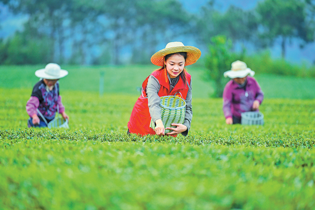 近日,在麗水青田縣章旦鄉伯溫茶園里,黨員正在幫助茶農采摘新茶。據了解,2022年以來,章旦鄉積極打造“后花園”共富黨建聯盟,推動8個行政村通過優勢互補、資源共享、收益共贏的方式,實現產業發展,助力增收致富。(雷寧、張永益)