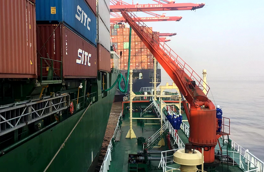 油船為船舶加注保稅燃料油。浙江海港國際貿易有限公司供圖