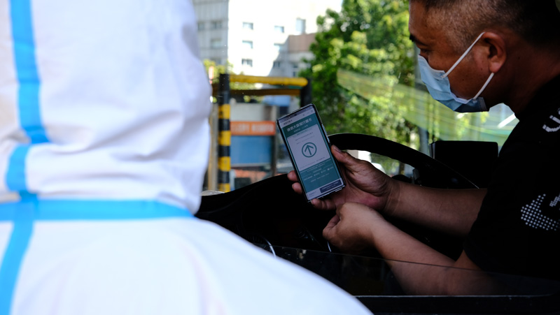 查驗行程卡。江北區委組織部供圖