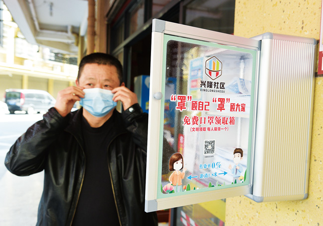 近日,浙江義烏福田街道興隆社區在轄區內主干道出入口、人員密集的超市、藥店、快遞點等地設置免費口罩領取箱,箱里放滿了口罩,箱體上寫著“文明領取,每人限領一個”;顒娱_展半個月以來,6個免費口罩領取箱共送出近6000個口罩。興隆社區黨委書記黃俊鋼表示,除了設立免費口罩領取箱,社區還大力開展佩戴口罩勸導活動。(錢旭升)