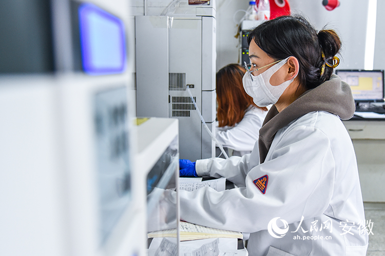 安徽聯創生物醫藥股份有限公司內,科研人員正在進行產品數據分析。人民網 李希蒙攝